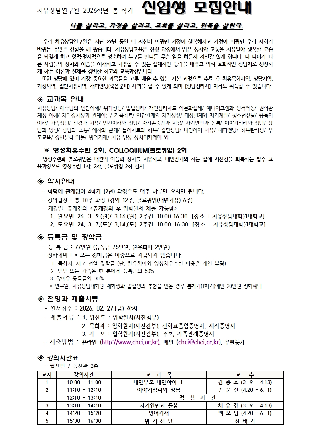 상호명 : (사)크리스찬치유상담연구원 사업자등록번호 : 114-82-06070