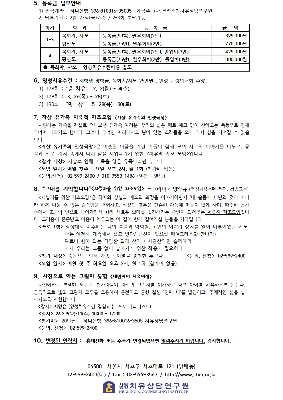 상호명 : (사)크리스찬치유상담연구원 사업자등록번호 : 114-82-06070