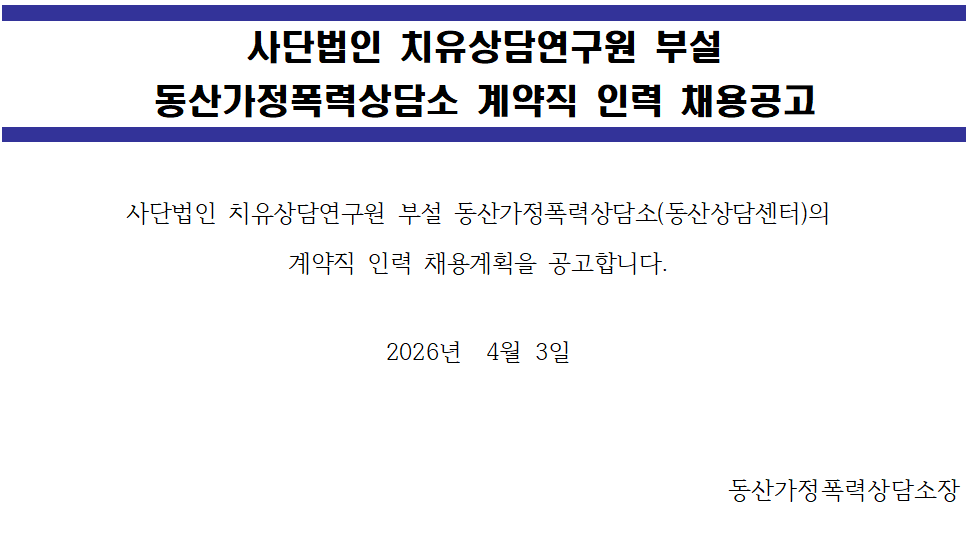 동산가정폭력상담소 계약직 인력 채용공고 (2026.04.02)).hwp